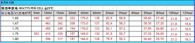電池恒定放電功率=負載功率÷(n×單組電池數量×h)